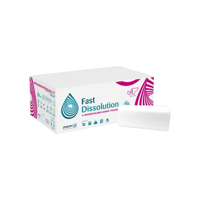 Prosoapele de hârtie Paperdi Fast Dissolution sunt proiectate pentru a reduce riscul blocării conductelor, în special în spațiile cu trafic intens. Datorită tehnologiei FD Range, hârtia se dizolvă rapid la contactul cu apa, în maximum 7 secunde (certificat prin teste de laborator), prevenind formarea blocajelor și reducând necesitatea intervențiilor de întreținere.